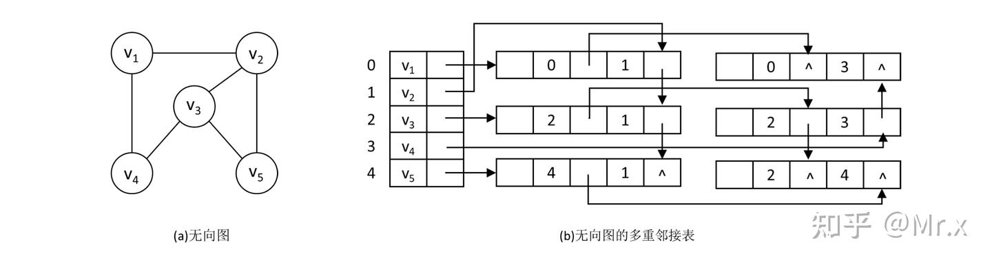 例如,下图(b)是下图(a)所示图的邻接多重表。
