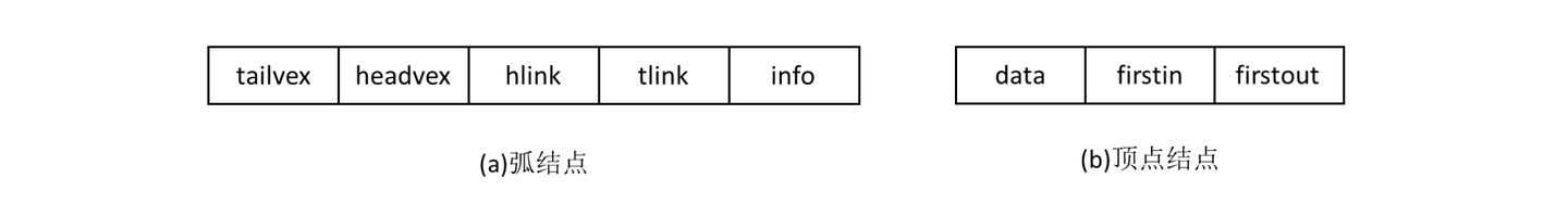 在弧结点中有 5 个域:其中尾域 tailvex 和头域 headvex 分别指示弧尾和弧头这两个顶点在图中的位置,链域 hlink 指向弧头相同的下一条弧,而链域 tlink 指向弧尾相同的下一条弧,info 域指向该弧的相关信息。弧头相同弧在同一链表上,弧尾相同的弧也在同一链表上。而它们的头结点即为顶点结点。