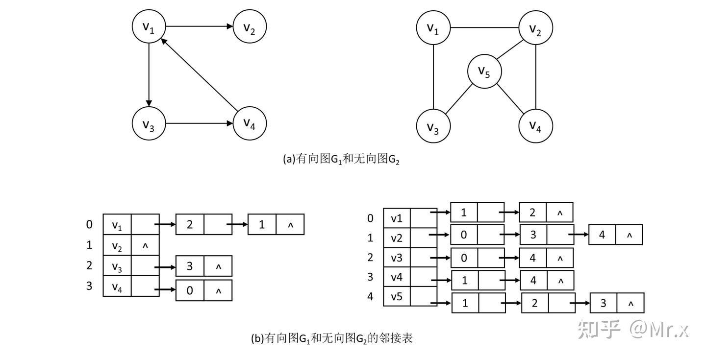 例如,在下图(a)中有两个图,图(b)则是它们对应的邻接表。