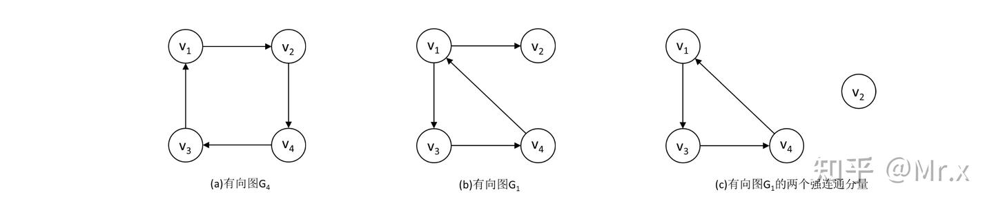 中,如果对于每一对 , ,从 到 和从 到 都存在路径,则称 是强连通图。有向图中的极大强连通子图称作有向图的强连通分量。例如,下图(a)就是一个强连通图,而图(b)则不是强连通图,但它有两个强连通分量,见图(c)。