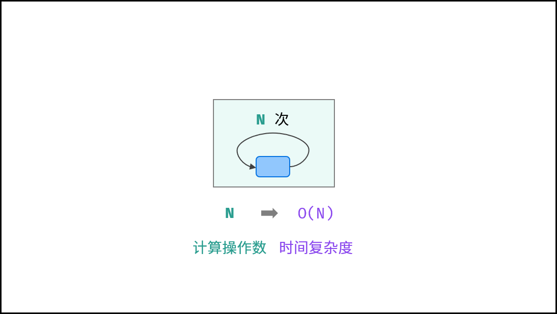 线性复杂度O(N):单层循环,如遍历数组求和。