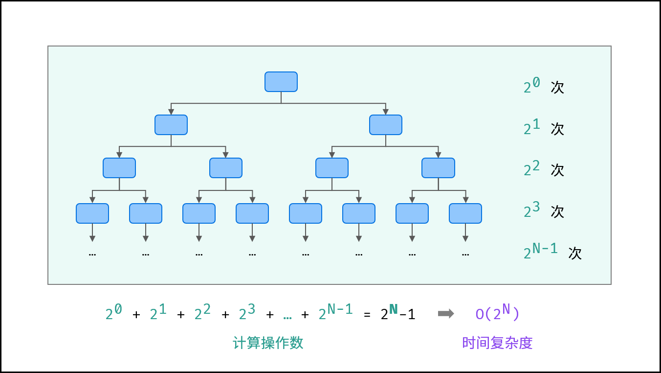 指数阶常见于二叉树、多叉树的空间分析,例如: