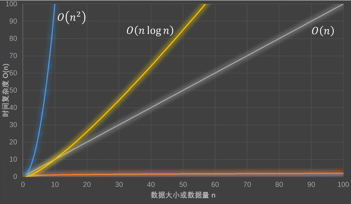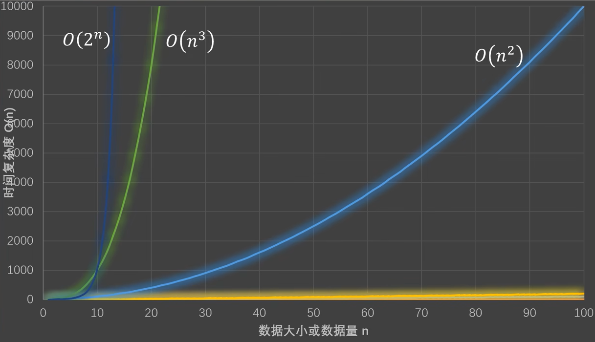 例如O(1)无论输入数据如何增多,代码运行时间都不变。而O(n)的运行时间和输入数据量成正比。如果时间复杂度过高,例如O(2^n),那么在小数据情况下,代码还可以运行,一旦数据量增大,则代码的运行时间将会几何级增加。
