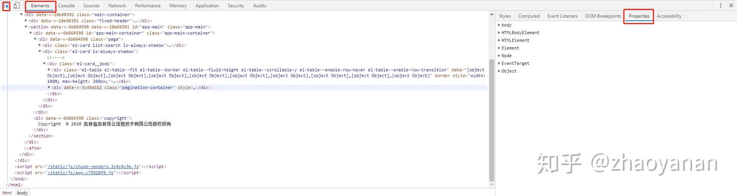 查看元素属性:可从被定位的源码中查看部分,如 class、src,也可在右边的侧栏中查看全部的属性,如下图位置查看