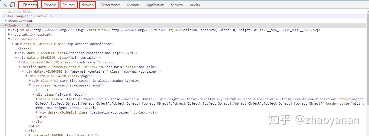 首先介绍 Chrome 开发者工具中,调试时使用最多的三个功能页面是:元素(ELements)、控制台(Console)、源代码(Sources),此外还有网络(Network)等。