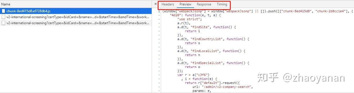 - Response:响应信息面板包含资源还未进行格式处理的内容